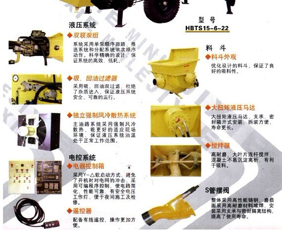 電機 主油泵(現(xiàn)在一般用韓國川崎的進口主油泵) 電磁閥(國內(nèi)用華德的多) 料缸 主油缸(國內(nèi)品牌好的是協(xié)力油缸) 潤滑泵 (6路潤滑泵)風冷(冷卻液壓油的,也有廠家用水冷,水冷工地需要接水,就是這個麻煩一些)電控柜 (PLC歐姆龍的比較好點)